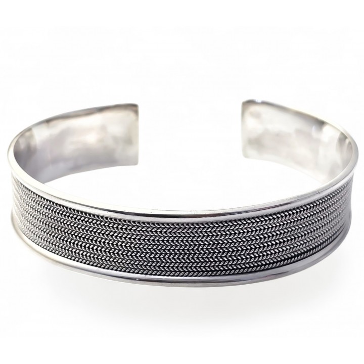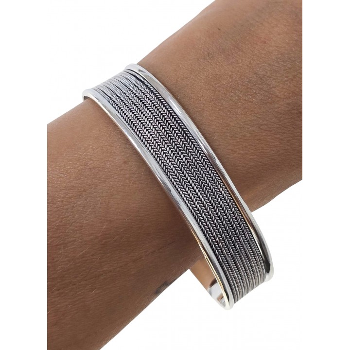 Brazalete oxidado de plata, fabricada de forma artesanal y en PLATA de LEY de 925 milésimas. Nuestro catálogo esta en constante actualización. Disponemos de STOCK PERMANENTE.