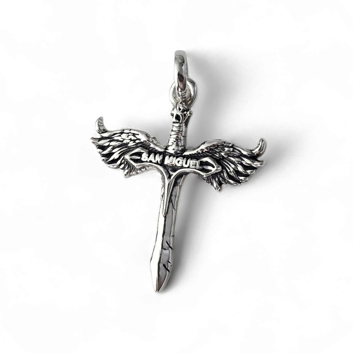 Colgante espada San Miguel de plata, fabricada de forma artesanal y en PLATA de LEY de 925 milésimas. Nuestro catálogo esta en constante actualización. Disponemos de STOCK PERMANENTE.