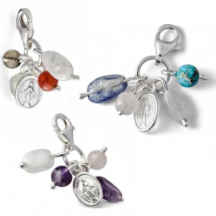 Colgante mosquetón piedra natural Milagrosa de plata, fabricada de forma artesanal y en PLATA de LEY de 925 milésimas. Nuestro catálogo esta en constante actualización. Disponemos de STOCK PERMANENTE.