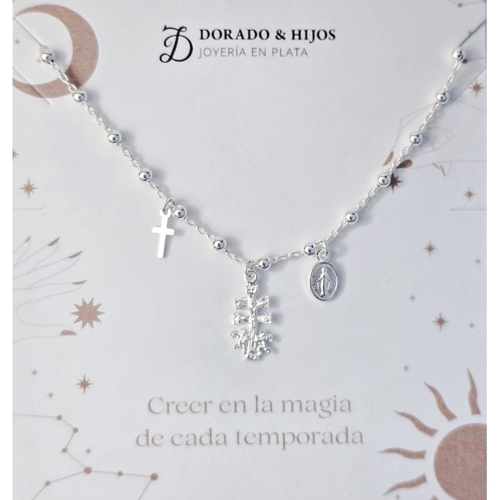 Gargantilla combinada Cruz de Caravaca de plata, fabricada de forma artesanal y en PLATA de LEY de 925 milésimas. Nuestro catálogo esta en constante actualización. Disponemos de STOCK PERMANENTE.