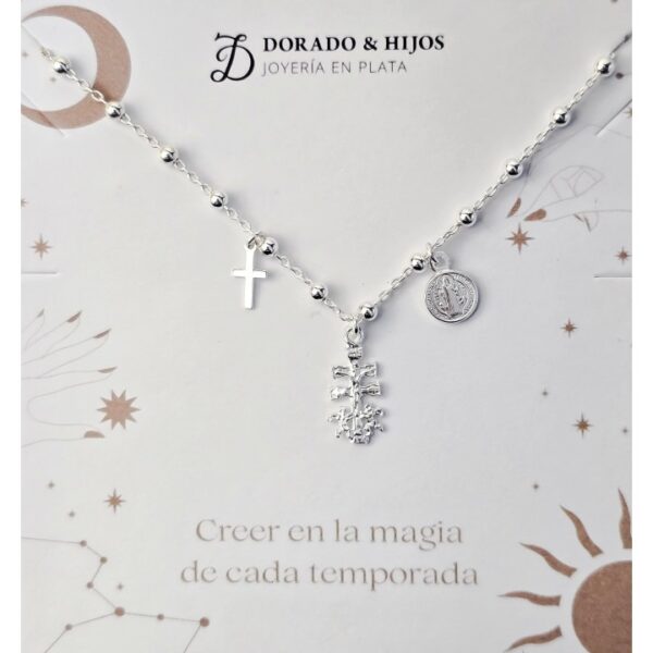 Gargantilla combinada Cruz de Caravaca de plata, fabricada de forma artesanal y en PLATA de LEY de 925 milésimas. Nuestro catálogo esta en constante actualización. Disponemos de STOCK PERMANENTE.