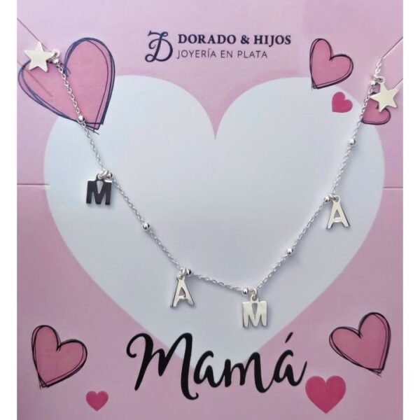 Gargantilla combinada mamá de plata, fabricada de forma artesanal y en PLATA de LEY de 925 milésimas. Nuestro catálogo esta en constante actualización. Disponemos de STOCK PERMANENTE.