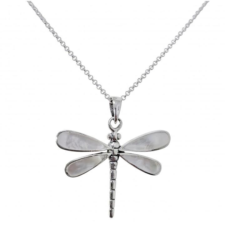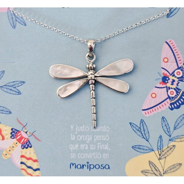 Gargantilla libélula nácar de plata, fabricada de forma artesanal y en PLATA de LEY de 925 milésimas. Nuestro catálogo esta en constante actualización. Disponemos de STOCK PERMANENTE.