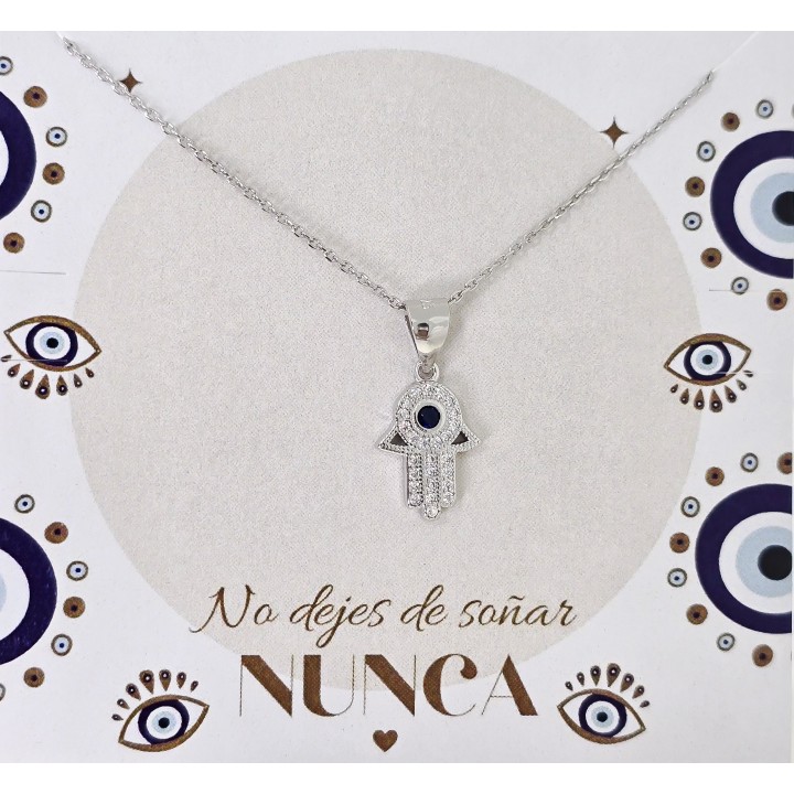 Gargantilla mano de Fátima rodio de plata, fabricada de forma artesanal y en PLATA de LEY de 925 milésimas. Nuestro catálogo esta en constante actualización. Disponemos de STOCK PERMANENTE.