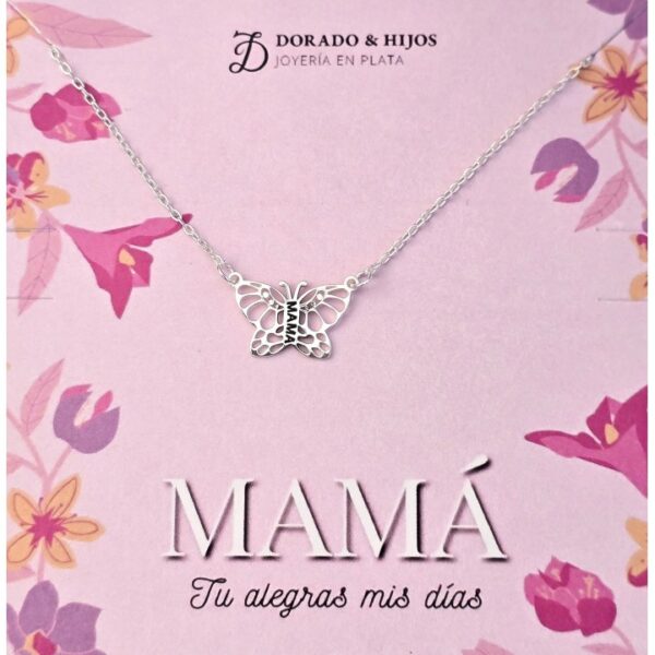 Gargantilla mini mariposa mamá de plata, fabricada de forma artesanal y en PLATA de LEY de 925 milésimas. Nuestro catálogo esta en constante actualización. Disponemos de STOCK PERMANENTE.