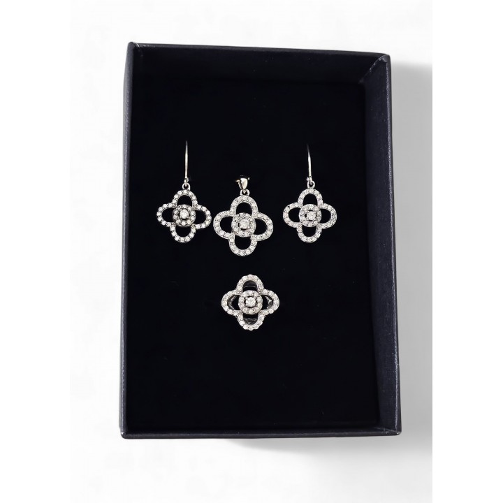 Juego circonita rodio de plata, fabricada de forma artesanal y en PLATA de LEY de 925 milésimas. Nuestro catálogo esta en constante actualización. Disponemos de STOCK PERMANENTE.