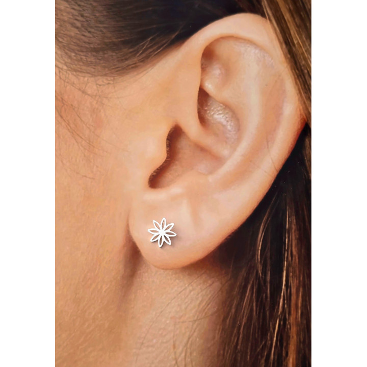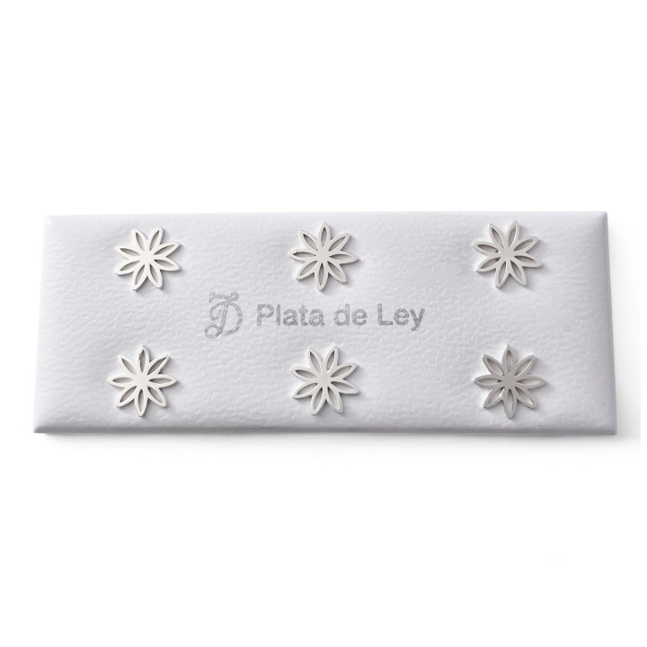 Pendiente flor presión de plata, fabricada de forma artesanal y en PLATA de LEY de 925 milésimas. Nuestro catálogo esta en constante actualización. Disponemos de STOCK PERMANENTE.