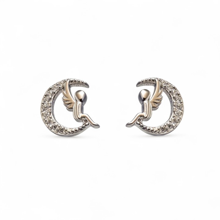 Pendiente rodio luna angelito de plata, fabricada de forma artesanal y en PLATA de LEY de 925 milésimas. Nuestro catálogo esta en constante actualización. Disponemos de STOCK PERMANENTE.
