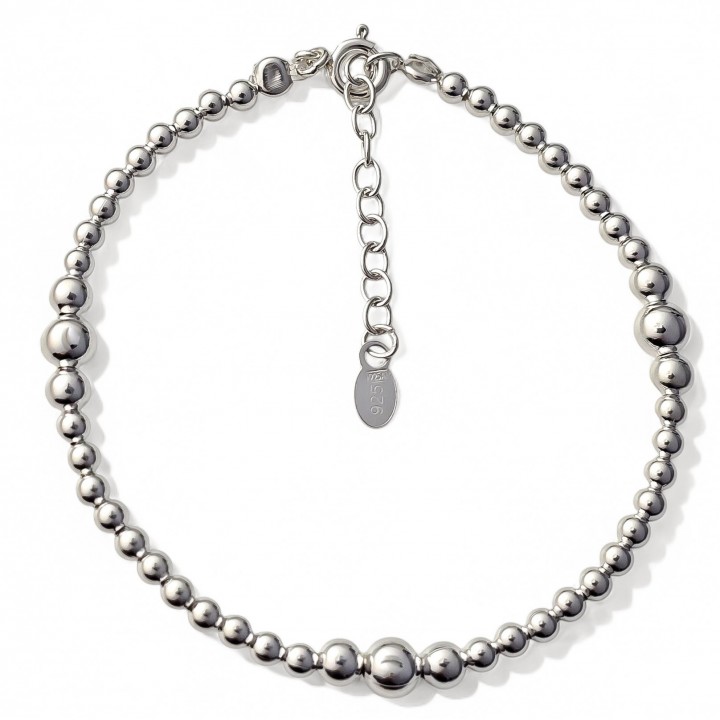 Pulsera bolas de plata, fabricada de forma artesanal y en PLATA de LEY de 925 milésimas. Nuestro catálogo esta en constante actualización. Disponemos de STOCK PERMANENTE.