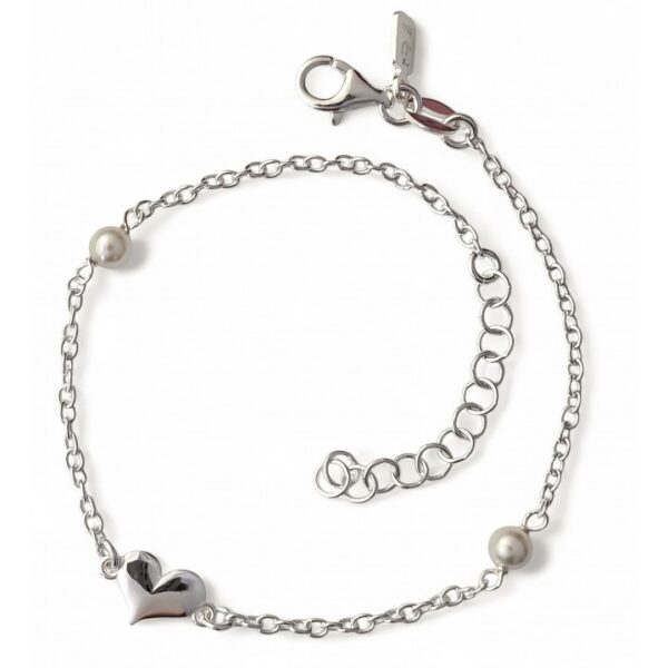 Pulsera corazón perla de plata, fabricada de forma artesanal y en PLATA de LEY de 925 milésimas. Nuestro catálogo esta en constante actualización. Disponemos de STOCK PERMANENTE.