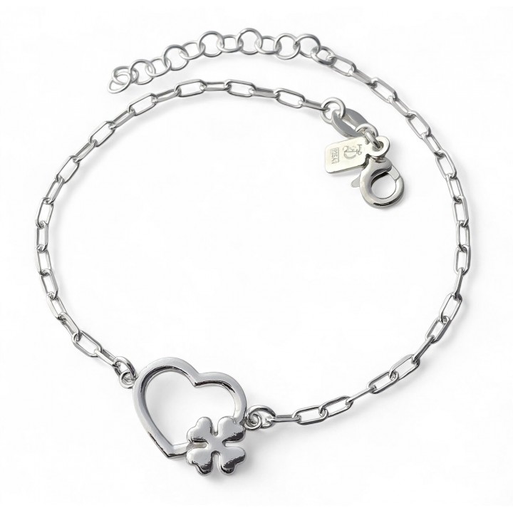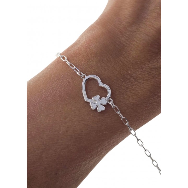 Pulsera corazón trébol de plata, fabricada de forma artesanal y en PLATA de LEY de 925 milésimas. Nuestro catálogo esta en constante actualización. Disponemos de STOCK PERMANENTE.