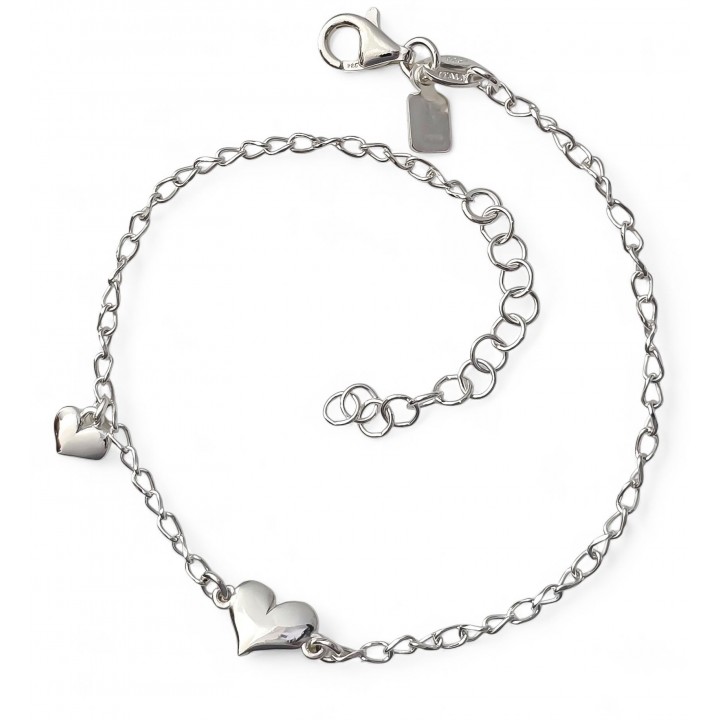 Pulsera corazones de plata, fabricada de forma artesanal y en PLATA de LEY de 925 milésimas. Nuestro catálogo esta en constante actualización. Disponemos de STOCK PERMANENTE.