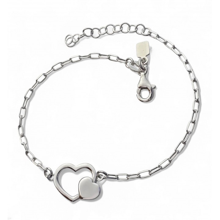 Pulsera corazones de plata, fabricada de forma artesanal y en PLATA de LEY de 925 milésimas. Nuestro catálogo esta en constante actualización. Disponemos de STOCK PERMANENTE.