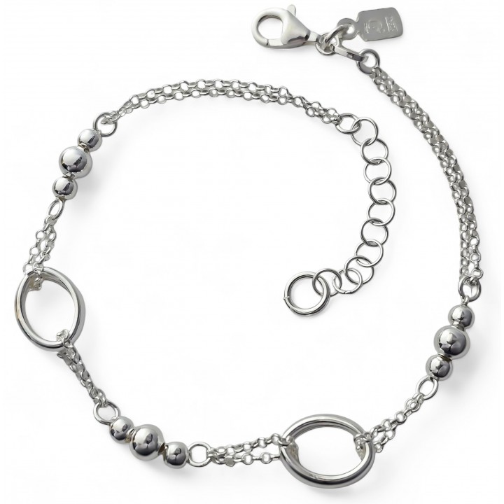 Pulsera doble cadena asas bolas de plata, fabricada de forma artesanal y en PLATA de LEY de 925 milésimas. Nuestro catálogo esta en constante actualización. Disponemos de STOCK PERMANENTE.