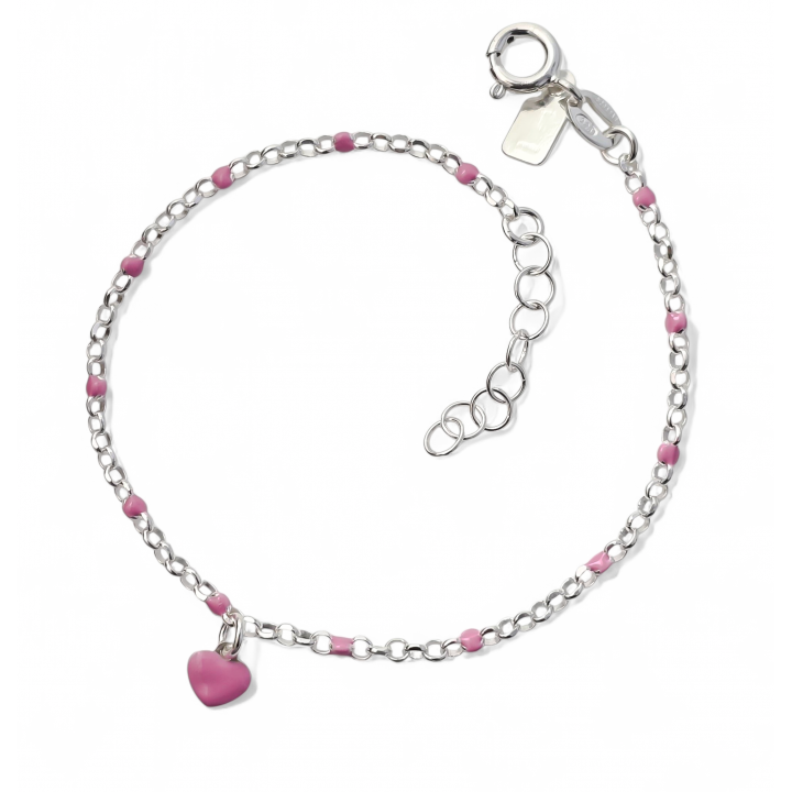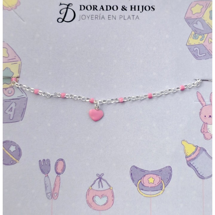 Pulsera infantil corazón de plata, fabricada de forma artesanal y en PLATA de LEY de 925 milésimas. Nuestro catálogo esta en constante actualización. Disponemos de STOCK PERMANENTE.