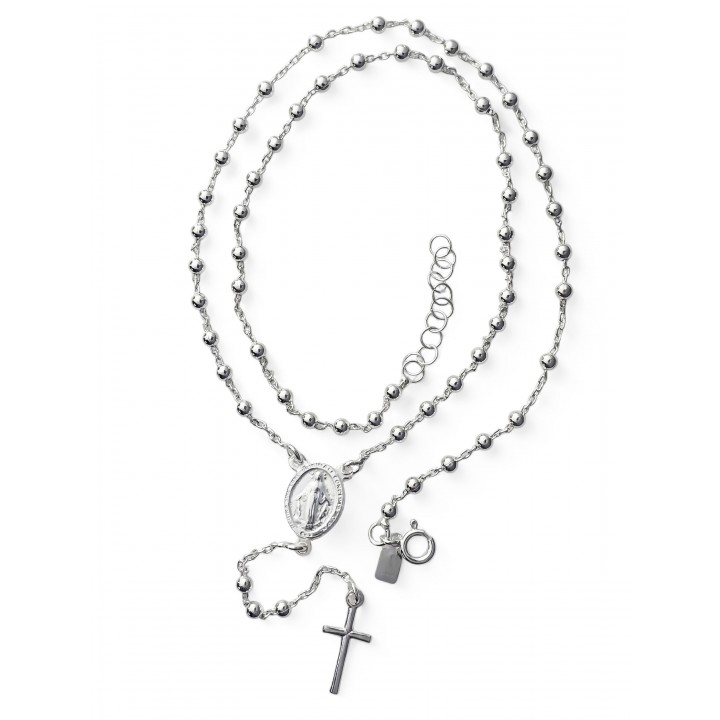 Rosario bolas Virgen Milagrosa de plata, fabricada de forma artesanal y en PLATA de LEY de 925 milésimas. Nuestro catálogo esta en constante actualización. Disponemos de STOCK PERMANENTE.